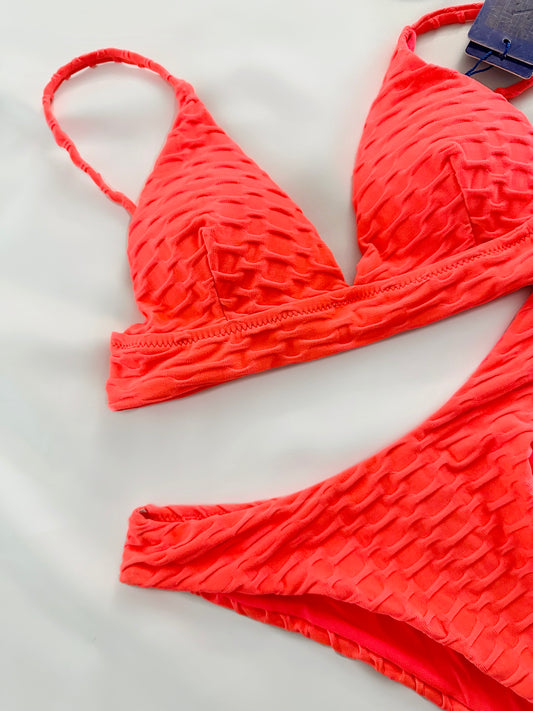 Orange Textured Two Piece Swimsuit