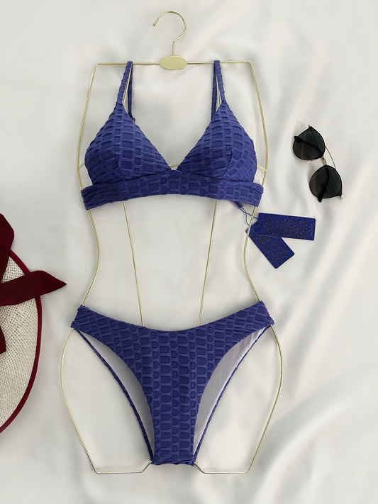 Purple Textured Two Piece Swimsuit