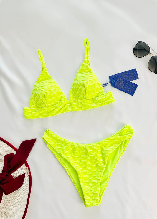 Yellow Textured Two Piece Swimsuit