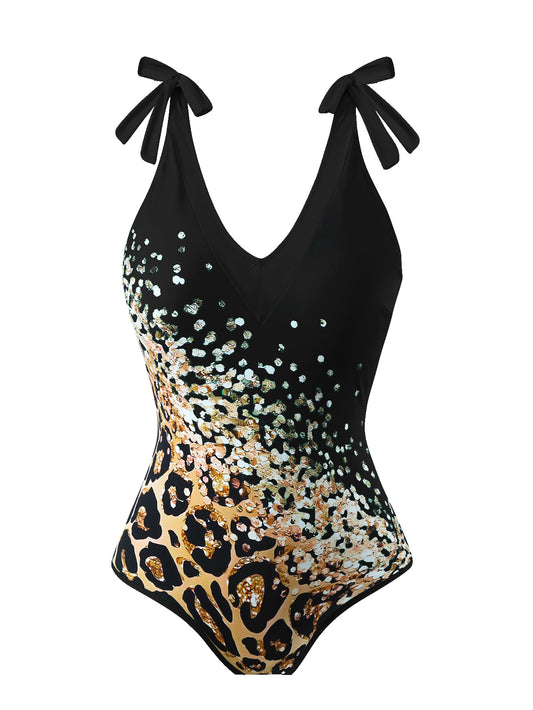 Black Leopard One Piece Swimsuit With Skirt Coverup